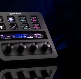 Le Elgato Stream Deck + est une console de mixage et une interface de production en direct et de studio, idéale pour les créateurs de contenus, le streaming et le gaming. Elle est équipée d'un ruban tactile, de boutons et de touches LCD, compatible avec Mac et PC.